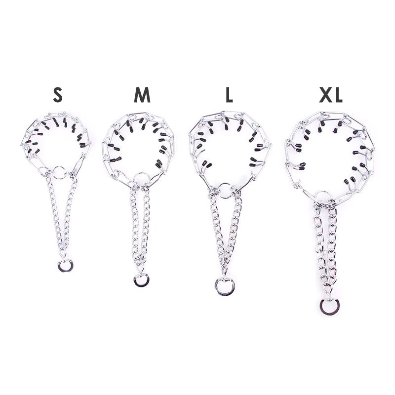 Train your dog with precision and care using this professional-grade pinch collar, designed for responsible handlers. The stainless steel chain provides long-lasting strength and corrosion resistance, while the rounded prongs are fitted with rubber comfort tips to help protect your dog’s neck from sharp pressure.