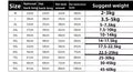 Wide size range: Nine sizes fit small to large dogs (about 2–60 kg) with detailed measurements.