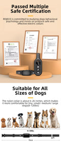 The IPX7-rated receiver is fully waterproof, so your dog can wear it in the rain, wet grass, or around puddles. The handheld remote offers up to 3300 ft (≈1000 m) of range in open areas, making it ideal for parks, backyards, and fields.
